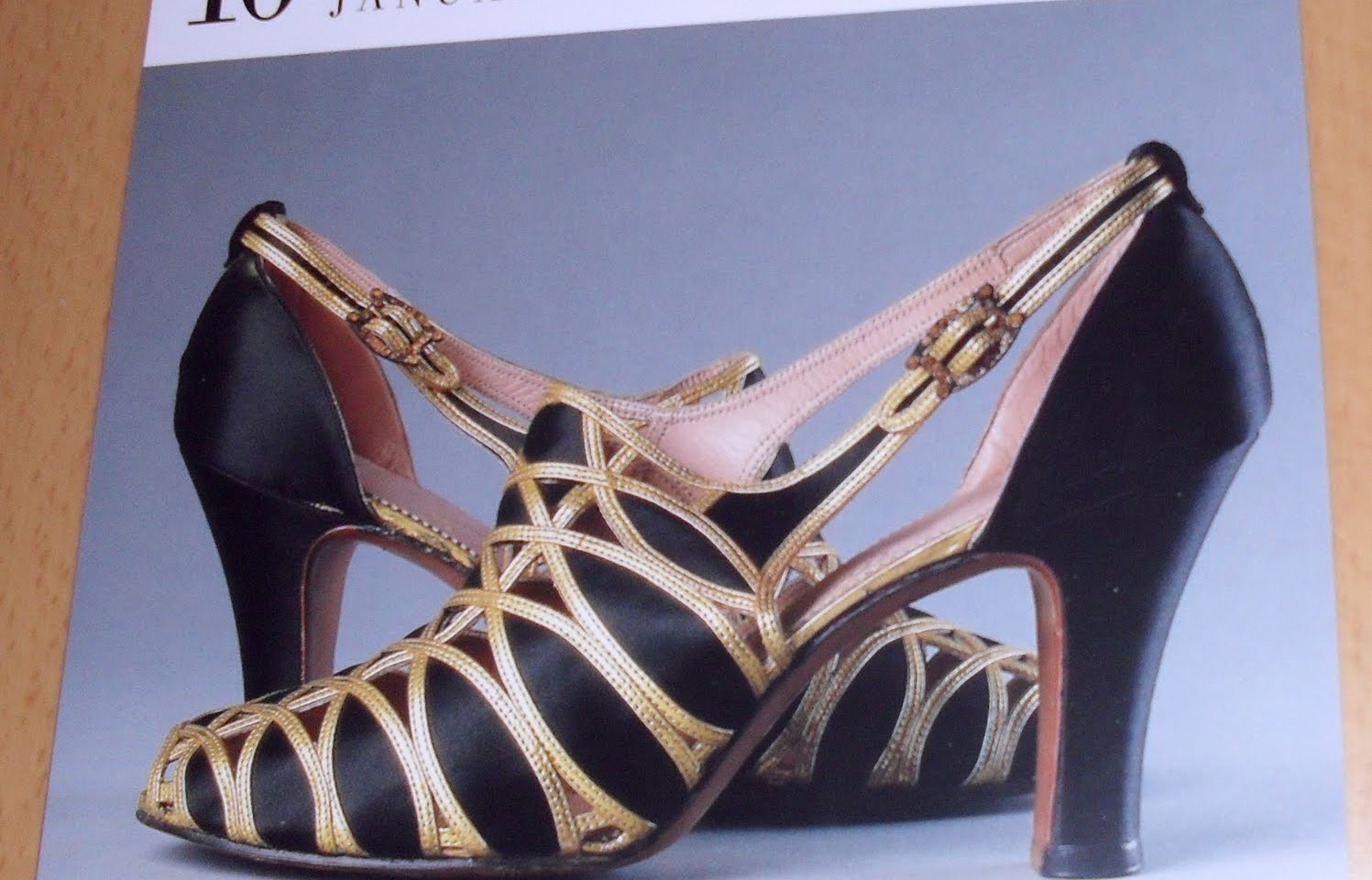 For the weekend the shoe was a pair of black satin and gold kid heels with a crisscross design from 1936, from a gorgeous luxery brand that is still running now - Delman <-- take a look.